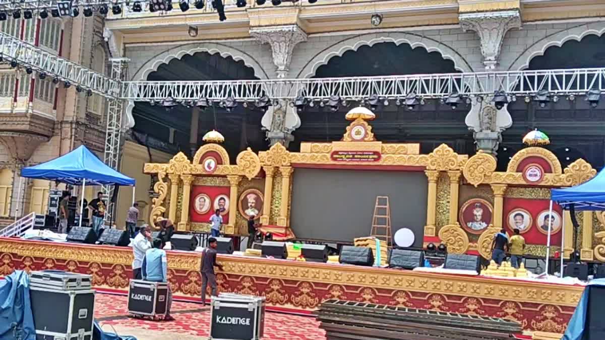 MYSURU DASARA : ದಸರಾ ಮಹೋತ್ಸವದ ಉದ್ಘಾಟನೆಗೆ ಚಾಮುಂಡಿ ಬೆಟ್ಟದಲ್ಲಿ ವೇದಿಕೆ ಸಿದ್ಧವಾಗಿದೆ. ನಾಳೆ ಬೆಳಿಗ್ಗೆ 10:10ರಿಂದ 10:40ರ ವರೆಗೆ ವೃಶ್ಚಿಕ ಲಗ್ನದಲ್ಲಿ, ಚಾಮುಂಡಿ ಬೆಟ್ಟದ ಬೆಳ್ಳಿಯ ರಥದಲ್ಲಿ ಇರಲಿರುವ ದೇವಿ ಚಾಮುಂಡೇಶ್ವರಿಗೆ ಗಣ್ಯರಿಂದ ಪುಷ್ಪಾರ್ಚನೆ ನೆರವೇರಲಿದೆ. ಈ ಮೂಲಕ 11 ದಿನಗಳ ನಾಡಹಬ್ಬ ದಸರಾ ಮಹೋತ್ಸವಕ್ಕೆ ಅಧಿಕೃತವಾಗಿ ಚಾಲನೆ ಲಭಿಸಲಿದೆ.