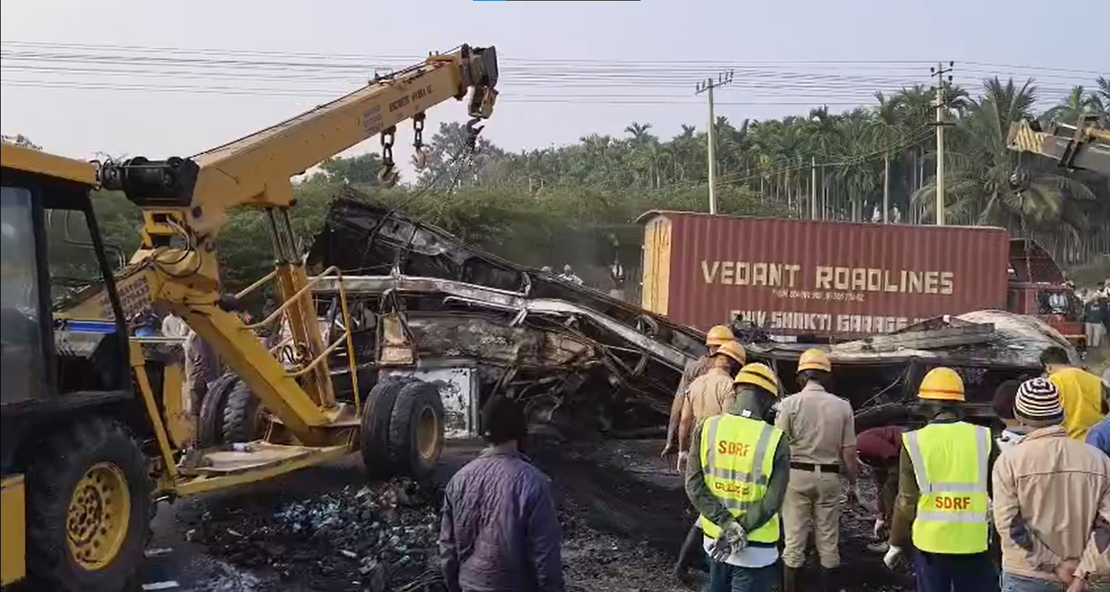 ಇದೇ ಸಂದರ್ಭದಲ್ಲಿ, ಅಪಘಾತವಾಗಿ ಸುಟ್ಟು ಕರಕಲಾಗಿರುವ ಬಸ್ ಸರಿಸಮವಾಗಿ ಚಲಿಸುತ್ತಿದ್ದ ಶಾಲಾ ಮಕ್ಕಳ ಪ್ರವಾಸದ ಬಸ್ ದಾಂಡೇಲಿಗೆ ತೆರಳುತ್ತಿತ್ತು.