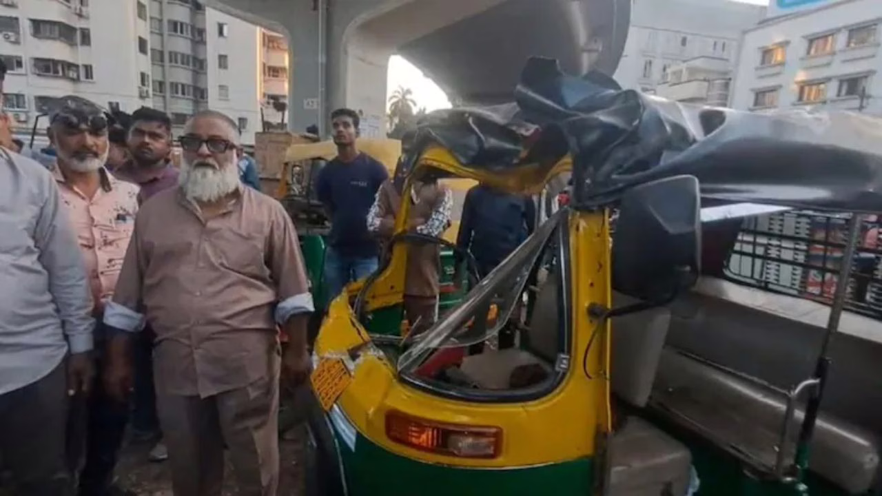 ಬೈಕ್ ಬಿದ್ದ ಪರಿಣಾಮ ಆಟೋರಿಕ್ಷಾ ಸಂಪೂರ್ಣ ನಜ್ಜುಗುಜ್ಜಾಗಿದೆ. ಆಟೋ ಚಾಲಕ ಸಣ್ಣಪುಟ್ಟ ಗಾಯಗಳೊಂದಿಗೆ ಪಾರಾಗಿದ್ದಾನೆ.