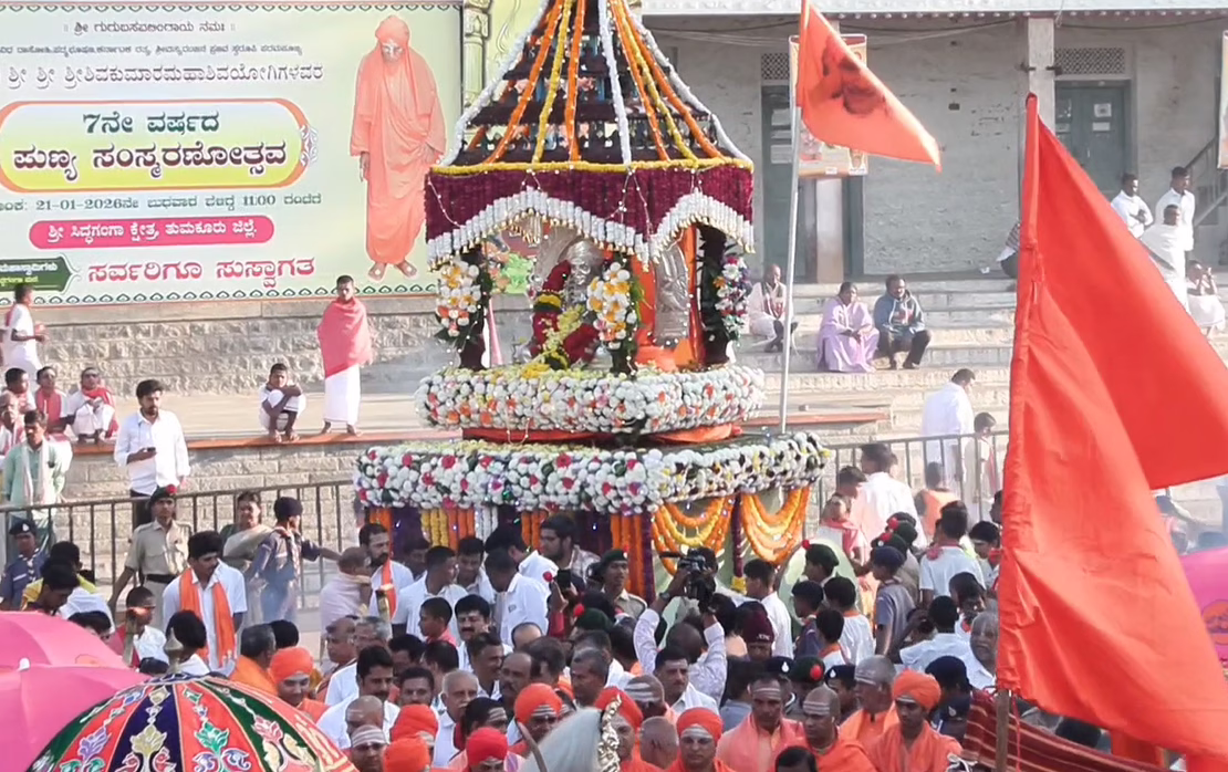 ಇನ್ನು ಸಿದ್ದಗಂಗಾ ಮಠದ ಆವರಣದಲ್ಲಿ ಶ್ರೀಗಳ ಬೆಳ್ಳಿ ಪುತ್ಥಳಿಯ ಭವ್ಯ ಮೆರವಣಿಗೆ ನಡೆಯಿತು. ಈ ಪುಣ್ಯ ಸಮಾರಂಭಕ್ಕೆ ಮಠದ ಭಕ್ತವೃಂದ, ಅಭಿಮಾನಿಗಳು, ಹಳೇ ವಿದ್ಯಾಥಿಗಳು ಮತ್ತು ಹಿತೈಷಿಗಳು ಸೇರಿ ಹೆಚ್ಚು ಜನರು ಆಗಮಿಸಿದ್ದಾರೆ.