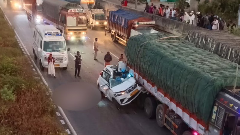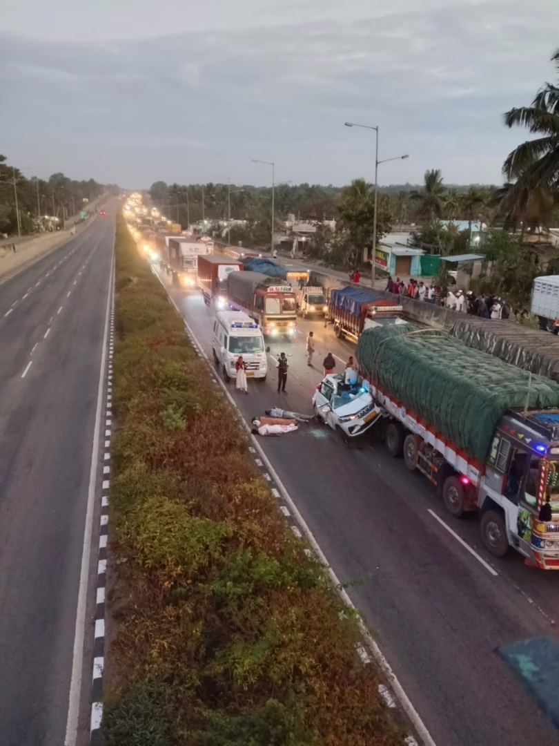 ಲಾರಿಗೆ ಹಿಂಬದಿಯಿಂದ ಡಿಕ್ಕಿಯಾದ ಕಾರು