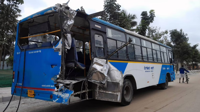 ಘಟಕ 51ರ ಬಿಎಂಟಿಸಿ ಬಸ್, ರೈಲ್ವೆ ಪ್ಯಾರಲಲ್ ರಸ್ತೆಯ ಬಳಿ ರಿವರ್ಸ್ ತೆಗೆಯುವಾಗ ಸಾಗುತ್ತಿದ್ದ ರೈಲಿಗೆ ಡಿಕ್ಕಿಯಾಗಿದೆ. ಬಸ್ ಘಟಕದಿಂದ ಕಾಡುಗೋಡಿ ನಿಲ್ದಾಣದತ್ತ ತೆರಳುತ್ತಿತ್ತು ಎಂದು ತಿಳಿದುಬಂದಿದೆ.