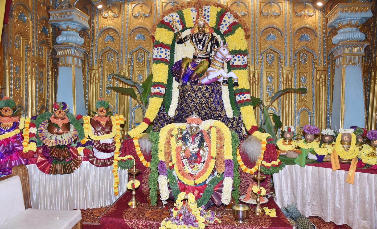 ನಗರದ ಜ್ಯೂನಿಯರ್ ಕಾಲೇಜು ಮೈದಾನದಲ್ಲಿ ಧಾರ್ಮಿಕ ಮಂಟಪ ನಿರ್ಮಾಣ ಮಾಡಲಾಗಿದ್ದು, ಮಂಟಪದಲ್ಲಿ ಚಾಮುಂಡೇಶ್ವರಿ ದೇವಿ ಮೂರ್ತಿಯನ್ನು ಪ್ರತಿಷ್ಠಾಪನೆ ಮಾಡಲಾಗಿದ್ದು, ದೇವಿಗೆ ನಿತ್ಯ ನವರಾತ್ರಿ ಅಂಗವಾಗಿ ಒಂದೊಂದು ಅವತಾರದಲ್ಲಿ ದೇವಿಗೆ ಅಲಂಕಾರ ಮಾಡಲಾಗ್ತಿದೆ. ಎರಡನೇ ದಿನವಾದ ಇಂದು ದೇವಿಗೆ ಬ್ರಹ್ಮಚಾರಿಣಿ ವಿಶೇಷ ಅಲಂಕಾರ ಮಾಡಲಾಗಿದ್ದು, ದೇವಿಯ ಅಲಂಕಾರ ಕಂಡು ಭಕ್ತರು ಮೂಖ ವಿಸ್ಮಿತರಾಗ್ತಿದ್ದಾರೆ. ಚಾಮುಂಡೇಶ್ವರಿ ದೇವಿಗೆ ವಿಶೇಷ ಪೂಜೆ, ಅಭಿಷೇಕ, ಹೋಮ- ಹವನ ನಡೆಸಲಾಗಿದ್ದು, ಗೃಹ ಸಚಿವ ಪರಮೇಶ್ವರ್ ದಂಪತಿ, ಡಿಸಿ ಶುಭಕಲ್ಯಾಣ್, ಜಿಲ್ಲಾ ಪಂಚಾಯ್ತಿ ಸಿಇಒ ಜಿ ಪ್ರಭು ದಂಪತಿ, ಎಸ್ಪಿ ಅಶೋಕ್ ವೆಂಕಟ್ ಸೇರಿ ಜಿಲ್ಲಾ ಮಟ್ಟದ ಅಧಿಕಾರಿಗಳು ಹಾಗೂ ಸಾರ್ವಜನಿಕರು ಪೂಜಾ ಕೈಂಕರ್ಯದಲ್ಲಿ ಭಾಗಿಯಾಗಿದ್ರು.