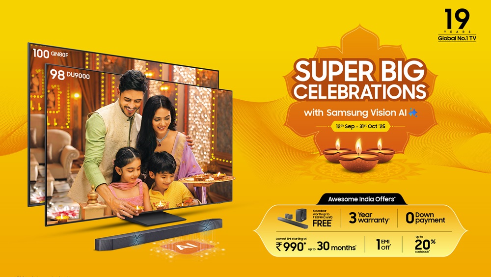 ಸ್ಯಾಮ್ಸಂಗ್ ತನ್ನ ಹಬ್ಬದ ಅಭಿಯಾನ – Super Big Celebrations ಅನ್ನು ಸೆಪ್ಟೆಂಬರ್ 24, 2025 ರಿಂದ ಪ್ರಾರಂಭಿಸಿದೆ. ಈ ಅಭಿಯಾನದ ಅಡಿಯಲ್ಲಿ, Vision AI ಚಾಲಿತ AI Smart TVಗಳು ಹಾಗೂ Bespoke AI ಗೃಹೋಪಯೋಗಿ ಉಪಕರಣಗಳು ಮೇಲೆ ವಿಶೇಷ ಕೊಡುಗೆಗಳು ಲಭ್ಯವಿವೆ. ಆಫರ್ ಅಕ್ಟೋಬರ್ 31, 2025 ರವರೆಗೆ ನಡೆಯಲಿದೆ. 55” ರಿಂದ 115” ಗಾತ್ರದ Vision AI ಟಿವಿಗಳ ವ್ಯಾಪಕ ಶ್ರೇಣಿ ಈ ಅಭಿಯಾನದಲ್ಲಿ ಒಳಗೊಂಡಿದೆ.