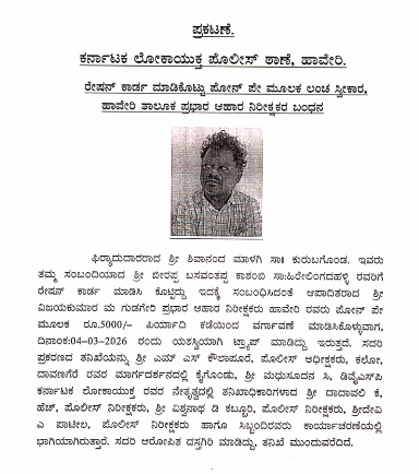 Haveri : ಪಡಿತರ ಚೀಟಿಗೆ 5 ಸಾವಿರ ಲಂಚ – ಆಹಾರ ನಿರೀಕ್ಷಕ ಬಂಧನ.