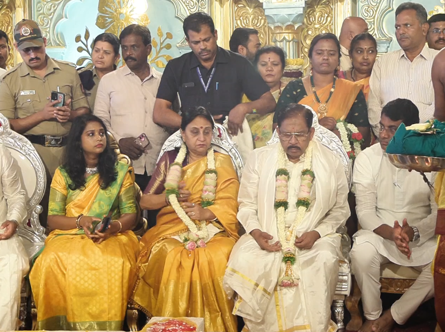 ನವರಾತ್ರಿ 4ನೇ ದಿನವಾದ ಇಂದು ದೇವಿಗೆ ಪೊಲೀಸ್ ಇಲಾಖೆಯಿಂದ ವಿಶೇಷ ಪೂಜೆ ಕೈಗೊಳ್ಳಲಾಗಿತ್ತು. . ಮುಂಜಾನೆ ಬ್ರಾಹ್ಮಿ ಮೂಹರ್ತದಲ್ಲಿ ದೇವಿಗೆ ಸುಪ್ರಭಾತ ಸೇವೆ, ಗಣಪತಿ ಪೂಜೆ, ಮಹಾಲಕ್ಷ್ಮೀ ಪೂಜೆ ಸೇರಿ ದೇವಿಗೆ ವಿಶೇಷ ಪೂಜೆ ನೇರವೇರಿಸಲಾಗಿದ್ದು, ಎಸ್ಪಿ ಅಶೋಕ್ ವೆಂಕಟ್, ಕಮಿಷನರ್ ಅಶ್ವಿಜಾ, ಡಿಸಿ ಶುಭಕಲ್ಯಾಣ್, ಜಿಲ್ಲಾ ಪಂಚಾಯ್ತಿ ಸಿಇಒ ಜಿ. ಪ್ರಭು ಸೇರಿ ಪೊಲೀಸ್ ಇಲಾಖೆಯ ಎಲ್ಲಾ ಸಿಬ್ಬಂದಿ ಹಾಗೂ ಜಿಲ್ಲಾಮಟ್ಟದ ಅಧಿಕಾರಿಗಳು ಪೂಜೆಯಲ್ಲಿ ಭಾಗಿಯಾಗಿದ್ರು. ಇನ್ನು ತುಮಕೂರು ದಸರಾ ಜಿಲ್ಲಾ ಉಸ್ತುವಾರಿ ಸಚಿವ ಪರಮೇಶ್ವರ್ ಅವರ ನೃೇತೃತ್ವದಲ್ಲಿ ನಡೆಯುತ್ತಿದ್ದು, ಪೂಜೆಯಲ್ಲಿ ಗೃಹ ಸಚಿವ ಪರಮೇಶ್ವರ್ ದಂಪತಿ, ಮಾಜಿ ಶಾಸಕ ಡಿ.ಸಿ ಗೌರಿ ಶಂಕರ್ ಸೇರಿ ಹಲವು ನಾಯಕರು ದಸರಾ ಪೂಜಾ ಕಾರ್ಯದಲ್ಲಿ ಭಾಗಿಯಾಗಿದ್ರು.