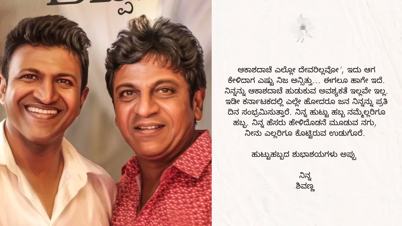 ಪ್ರೀತಿಯ ತಮ್ಮನ ಹುಟ್ಟುಹಬ್ಬದ ಪ್ರಯುಕ್ತ ಹ್ಯಾಟ್ರಿಕ್ ಹೀರೋ ಶಿವರಾಜ್ಕುಮಾರ್ ಅವರು ಸೋಷಿಯಲ್ ಮೀಡಿಯಾದಲ್ಲಿ ಸಿನಿಮಾದ ಹಾಡಿನ ಸಾಲುಗಳ ಮೂಲಕ ಭಾವುಕ ನುಡಿಗಳನ್ನಾಡಿದ್ದಾರೆ. ‘ಆಕಾಶದಾಚೆ ಎಲ್ಲೋ ದೇವರಿಲ್ಲವೋ, ಇದು ಆಗ ಕೇಳಿದಾಗ ಎಷ್ಟು ನಿಜ ಅನ್ಸಿತ್ತು.. ಈಗಲೂ ಹಾಗೇ ಇದೆ. ನಿನ್ನನ್ನು ಆಕಾಶದಾಚೆ ಹುಡುಕುವ ಅವಶ್ಯಕತೆ ಇಲ್ಲವೇ ಇಲ್ಲ. ಇಡೀ ಕರ್ನಾಟಕದಲ್ಲಿ ಎಲ್ಲೇ ಹೋದರೂ ಜನ ನಿನ್ನನ್ನು ಪ್ರತಿ ದಿನ ಸಂಭ್ರಮಿಸುತ್ತಾರೆ. ನಿನ್ನ ಹುಟ್ಟು ಹಬ್ಬ ನಮ್ಮೆಲ್ಲರಿಗೂ ಹಬ್ಬ. ನಿನ್ನ ಹೆಸರು ಹೇಳಿದೊಡನೆ ಮೂಡುವ ನಗು, ನೀನು ಎಲ್ಲರಿಗೂ ಕೊಟ್ಟಿರುವ ಉಡುಗೊರೆ ಎಂದು ಬರೆದುಕೊಂಡು ಶಿವಣ್ಣ ತಮ್ಮನನ್ನು ಸ್ಮರಿಸಿದ್ದಾರೆ.