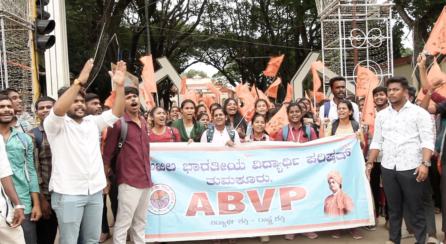 : ತುಮಕೂರು ನಗರದ ಟೌನ್ ಹಾಲ್ ಸರ್ಕಲ್ಗೆ ಜಮಯಿಸಿದ ಎಬಿವಿಪಿ ಕಾರ್ಯಕರ್ತರು ಹಾಗೂ ವಿವಿಧ ಕಾಲೇಜು ವಿದ್ಯಾರ್ಥಿಗಳು ರಸ್ತೆ ತಡೆ ನಡೆಸಿ, ಬೃಹತ್ ಪ್ರತಿಭಟನೆ ನಡೆಸಿ ಸರ್ಕಾರದ ವಿರುದ್ಧ ಧಿಕ್ಕಾರ ಕೂಗಿ ಆಕ್ರೋಶ ಹೊರಹಾಕಿದ್ರು. ರಾಜ್ಯದಲ್ಲಿ ಖಾಲಿ ಇರೋ 12 ಸಾವಿರ ಉಪನ್ಯಾಸಕರ ನೇಮಕಾತಿಗೆ ಅರ್ಜಿ ಆಹ್ವಾನಿಸಿದ್ದು, 55 ಸಾವಿರ ಅರ್ಜಿಗಳು ಸಲ್ಲಿಕೆ ಆಗಿವೆ. ಆದ್ರೆ ಈವರೆಗೂ ನೇಮಕಾತಿ ಪ್ರಕ್ರಿಯೆ ನಡೆದಿಲ್ಲ. ಹೀಗಾಗಿ ಎಲ್ಲಾ ವಿಶ್ವವಿದ್ಯಾನಿಲಯಗಳಲ್ಲಿ ತರಗತಿ ಪ್ರಾರಂಭವಾಗಿ 2 ತಿಂಗಳು ಕಳೆದರೂ ವಿದ್ಯಾರ್ಥಿಗಳಿಗೆ ಸರಿಯಾದ ತರಗತಿಗಳು ನಡೆಯುತ್ತಿಲ್ಲ ಇದ್ರಿಂದ ವಿದ್ಯಾರ್ಥಿಗಳ ಭವಿಷ್ಯ ಅತಂತ್ರ ಅಗ್ತಾ ಇದೆ ಎಂದು ಪ್ರತಿಭಟನಕಾರರು ಆಕ್ರೋಶ ಹೊರಹಾಕಿದ್ರು.