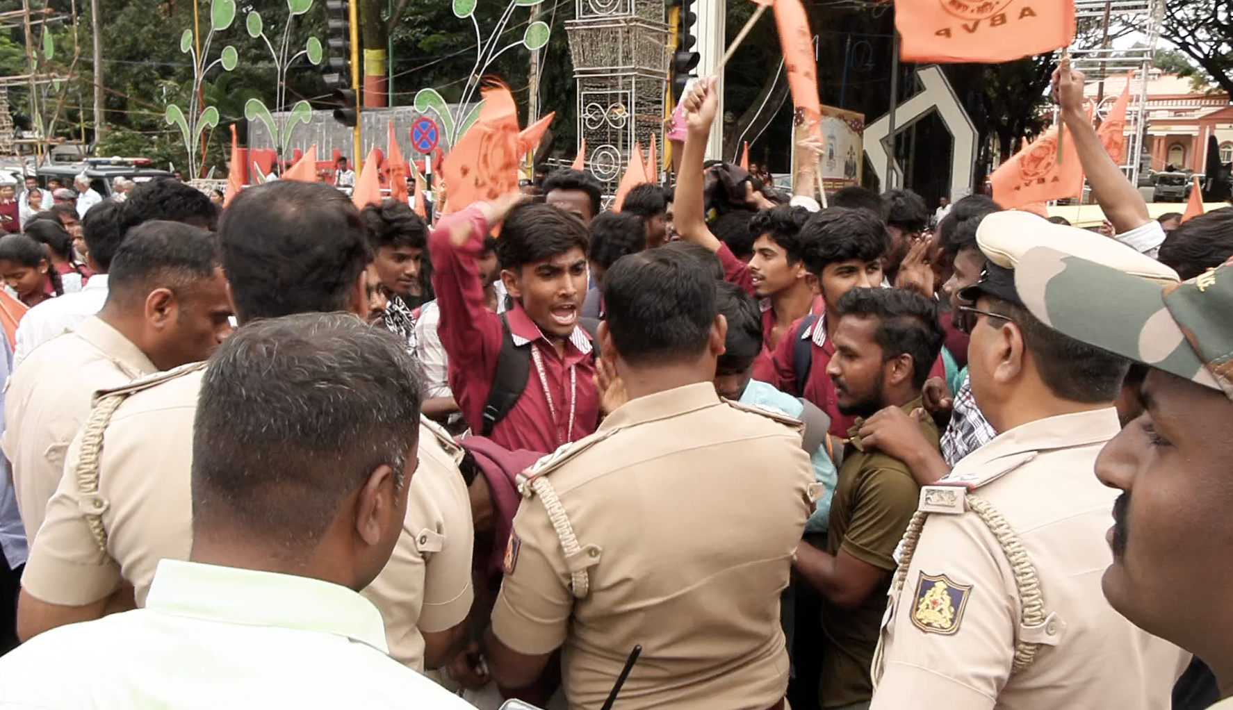 ಇನ್ನು ಪ್ರತಿಭಟನಕಾರರು ರಸ್ತೆ ಮಧ್ಯೆ ಕುಳಿತು ಪ್ರತಿಭಟನೆ ನಡೆಸಿದ್ದು, ವಾಹನ ಸಂಚಾರಕ್ಕೆ ಅಡಚಣೆ ಮಾಡಿದ್ರು. ಕೂಡಲೇ ಪೊಲೀಸರು ಮಧ್ಯಪ್ರವೇಶಿಸಿ ಪ್ರತಿಭಟನೆ ಕೈಬಿಡುವಂತೆ ತಿಳಿಸಿದ್ರು. ಈ ವೇಳೆ ಪೊಲೀಸರು ಹಾಗೂ ಪ್ರತಿಭಟನಾಕಾರರ ಮಧ್ಯೆ ಮಾತಿನ ಚಕಮಕಿ ನಡೆಯಿತು.