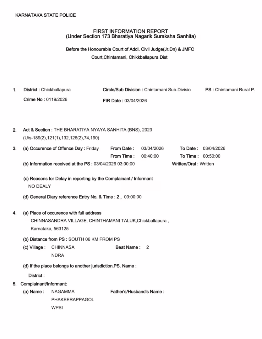 ಚಿಂತಾಮಣಿ ಗ್ರಾಮಾಂತರ ಠಾಣೆಯ PSI ನಾಗಮ್ಮ ಹಾಗೂ ಜೀಪ್ ಚಾಲಕ ವೇಣುಗೋಪಾಲ್ ಅವರು ಏಪ್ರಿಲ್ 3ರಂದು ತಡರಾತ್ರಿ ಸುಮಾರು 12.40ರ ವೇಳೆಯಲ್ಲಿ ಗಸ್ತಿನಲ್ಲಿದ್ದಾಗ, ನಿಯಮ ಉಲ್ಲಂಘಿಸಿ ತೆರೆದಿದ್ದ ಹೋಟೆಲ್ ಬಗ್ಗೆ ಪ್ರಶ್ನಿಸಿದ್ದಾರೆ. ಈ ವೇಳೆ ಸ್ಥಳದಲ್ಲಿದ್ದ ಕೆಲವರು ಕ್ಯಾತೆ ತೆಗೆದು, ಪಿಎಸ್ಐ ನಾಗಮ್ಮ ಅವರ ಮೇಲೆ ದಮ್ಕಿ ಹಾಕಿ ಹಲ್ಲೆಗೆ ಯತ್ನಿಸಿದ್ದಾರೆ. ಬಳಿಕ ಘಟನೆಗೆ ಸಂಬಂಧಿಸಿದಂತೆ ನಾಗೇಂದ್ರ, ನವೀನ್, ಪುನೀತ್ ಮತ್ತು ನರೇಂದ್ರ ಎಂಬವರ ವಿರುದ್ಧ ಎಫ್ಐಆರ್ ದಾಖಲಾಗಿದೆ. ಅದ್ರೆ ಘಟನೆ ನಡೆದು ಮೂರು ದಿನಗಳಾದರೂ ಆರೋಪಿಗಳ ಬಂಧನವಾಗಿಲ್ಲ ಎಂಬುದು ಸಾರ್ವಜನಿಕರಲ್ಲಿ ಆಕ್ರೋಶಕ್ಕೆ ಕಾರಣವಾಗಿದೆ.