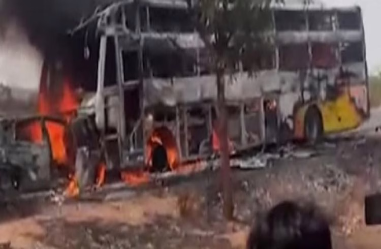 BREAKING : ರಾಜ್ಯದಲ್ಲಿ ಮತ್ತೊಂದು ಭೀಕರ ಅಪಘಾತ – ಬಸ್ ಡಿಕ್ಕಿಯಾಗಿ ಹೊತ್ತಿ ಉರಿದ ಕಾರು, 6 ಜನ ಸಜೀವ ದಹನ!