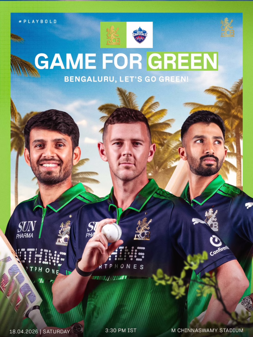 RCB ತಂಡ ಇಂದು Delhi Capitals ವಿರುದ್ಧ ಹಸಿರು ಜೆರ್ಸಿಯಲ್ಲಿ ಕಣಕ್ಕಿಳಿಯಲಿದೆ. 2011ರಿಂದ ಆರಂಭವಾದ ಪರಿಸರ ಜಾಗೃತಿ ಸಂಪ್ರದಾಯದ ವಿಶೇಷತೆ ಮತ್ತು ತಂಡದ ಪ್ರಸ್ತುತ ಪ್ರದರ್ಶನದ ಮಾಹಿತಿ ಇಲ್ಲಿದೆ.
