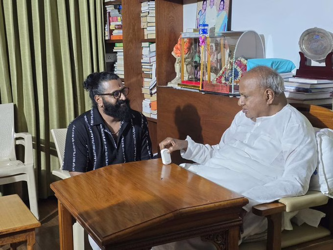 ಕೆಲವು ದಿನಗಳ ಹಿಂದೆ ಎಚ್.ಡಿ. ದೇವೇಗೌಡ ಅವರ ಆರೋಗ್ಯದಲ್ಲಿ ಏರುಪೇರಾಗಿದ್ದು, ಚಿಕಿತ್ಸೆಗಾಗಿ ಬೆಂಗಳೂರಿನ ಮಣಿಪಾಲ್ ಆಸ್ಪತ್ರೆಗೆ ದಾಖಲಾಗಿದ್ದರು. ಬಳಿಕ ಚೇತರಿಸಿಕೊಂಡು ತಮ್ಮ ನಿವಾಸಕ್ಕೆ ಮರಳಿದ್ದಾರೆ. ಹೀಗಾಗ ಅವರ ಆರೋಗ್ಯವನ್ನೂ ರಿಷಬ್ ಶೆಟ್ಟಿ ವಿಚಾರಿಸಿದರು. ಕೆಲವು ದಿನಗಳ ಹಿಂದೆ ಮಾಜಿ ಮುಖ್ಯಮಂತ್ರಿ, ಕೇಂದ್ರ ಸಚಿವ ಎಚ್.ಡಿ. ಕುಮಾರಸ್ವಾಮಿ ಪತ್ನಿ ಜತೆ ʼಕಾಂತಾರ: ಚಾಪ್ಟರ್ 1′ ಚಿತ್ರ ವೀಕ್ಷಿಸಿ ಮೆಚ್ಚುಗೆ ವ್ಯಕ್ತಪಡಿಸಿದ್ದರು.