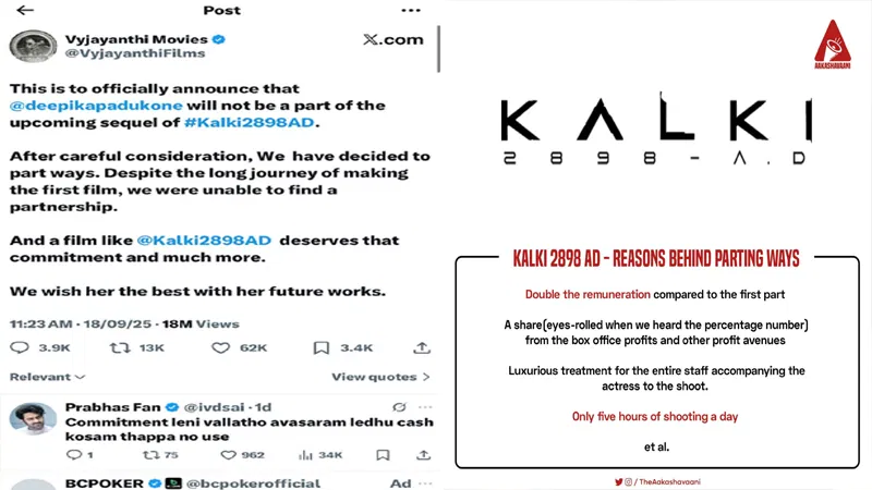 ಪ್ರಭಾಸ್ ಅಭಿನಯದ ‘ಕಲ್ಕಿ 2898 AD’ ಮುಂದಿನ ಭಾಗದಲ್ಲಿ ಭರ್ಜರಿ ಯಶಸ್ಸು ಕಂಡಿತ್ತು. ದೀಪಿಕಾ ಈ ಚಿತ್ರದಲ್ಲಿ ಗರ್ಭಿಣಿಯಾಗಿ ಭವಿಷ್ಯದ ದೇವಮಾನವ ಕಲ್ಕಿಯನ್ನು ಜನ್ಮ ನೀಡುವ ಪಾತ್ರದಲ್ಲಿ ನಟನೆ ಮಾಡಿದ್ದಾರೆ. ಆದರೆ, 2ನೇ ಭಾಗಕ್ಕೆ ದೀಪಿಕಾ ಹೆಚ್ಚುವರಿ ಸಂಭಾವನೆ ಕೇಳಿರುವುದರಿಂದ, ನಿರ್ಮಾಪಕರು ಅವರನ್ನು ಚಿತ್ರದಿಂದ ಹೊರಗಿಟ್ಟಿದ್ದಾರೆಎಂಬ ಸುದ್ದಿ ಹೊರಬಿದ್ದಿದೆ.